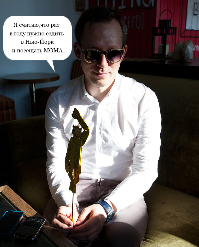А. Б.: Я учился на физика-химика в Институте стали и сплавов. Мой друг оказался творческим человеком, благодаря ему и я начал интересоваться искусством, познакомился с галеристами, с работой фонда "Артхроника" и многими другими, стал им помогать и дальше изучать арт. Затем я создал проект Artguide — приложение для iPhone и сайт — путеводитель по московским выставкам, галереям. И, несмотря на то, что он задумывался как узкоспециализированный, любой гость столицы с его помощью может сориентироваться, куда пойти.