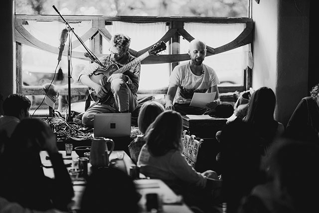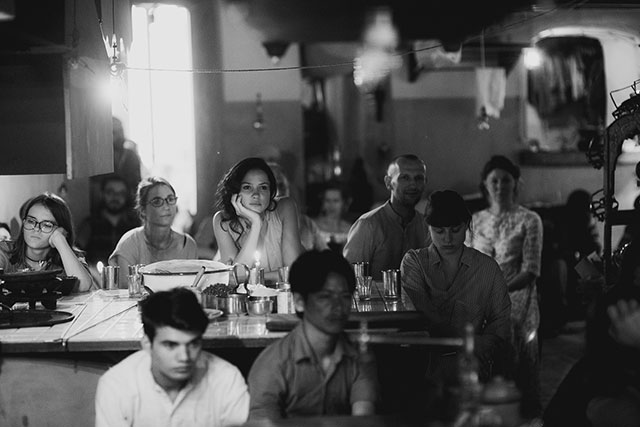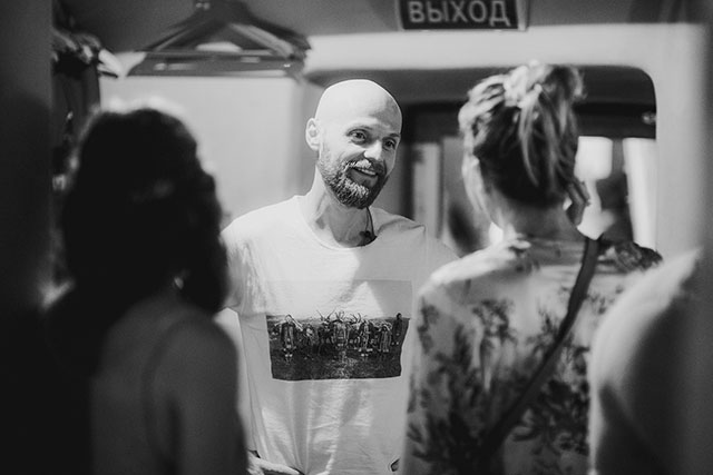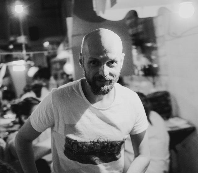 Иван Вырыпаев, которого после ухода из театра «Практика» все реже можно застать в Москве, организовал необычный вечер в ресторане «Москва-Дели» на Патриарших. «Мы хотим попытаться возродить забытый формат, когда люди приходят на ужин, а кто-то для них поет, играет музыку и в конце мы все вместе едим. Воспринимайте тексты, которые я сегодня буду читать, как угощение. Даже если у меня что-то не получится и вам будет скучно, я очень не хочу, чтобы погиб сам формат, потому что он замечательный», — начал вечер Иван, компанию которому составил актер и композитор Казимир Лиске, «подыгрывавший» Вырыпаеву на гитаре.