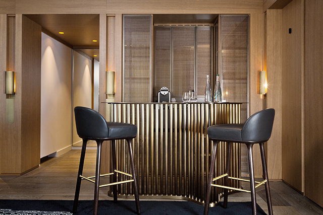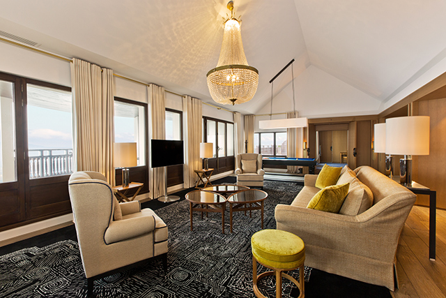 Работы по реновации Hotel Royal, расположенного на склоне горы недалеко от Парижа, длились три года. Конечно, обновить интерьеры начала XX века — задача не из простых, но дизайнер Франсуа Шамсо и главный архитектор исторических памятников Франции Франсуа Шатильон с ней справились. Основной вопрос: как почтить столетнюю историю отеля и добавить ему современности? — решен с помощью деликатных деталей в интерьере. Например, актуальный футуристичный светильник из разновеликих сфер гармонично разместился под потолком, украшенным фресками. Собственно, такими смешениями изобилуют и обновленные номера Hotel Royal, в которых старинная мебель из ценных пород дерева гармонирует с более современной. Все 150 номеров отеля наполнены смелой эклектикой и ждут гостей, способных оценить новое и почтить неизменное, коим до сих пор являются Альпы, Женевское озеро и вид на городок Эвиан-ле-Бен.