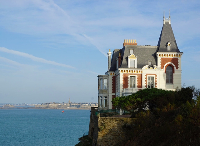 Но с конца 60-х рафинированная публика постепенно стала возвращаться на Атлантику. И цены на виллы Belle Époque на двух мысах, обрамляющих пляж l'Ecluse, взлетели. Эти мысы — Мулине и Малуан — настоящее культурное достояние Динара. Они застроены виллами в эклектичном стиле: тут есть мозаики, майолика, ренессансе лоджии, портики, солнечные часы и резные деревянные террасы. Тут есть вилла семьи Хеннесси и вилла семьи Пино — если пройти чуть дальше по променаду Clair de Lune в сторону сада. Сам променад Clair de Lune с клумбами, цветущим жасмином и пальмами, с яхт-клубом ар-деко и бывшим аквариумом той же эпохи нужно непременно пройти до конца, подняться на мыс Мулине, посмотреть на виллы и зайти в крошечную англиканскую церковь Святого Варфоломея. Она тут осталась с тех самых времен, когда Динар был чуть ли не главным британским курортом во Франции, но здесь до сих пор много англичан и церковь всегда открыта. В ней на каждом сиденье лежат разноцветные расшитые подушечки под колени, а вокруг — маленький игрушечной красоты садик. А потом пересечь пляж и пойти на мыс Малуан.