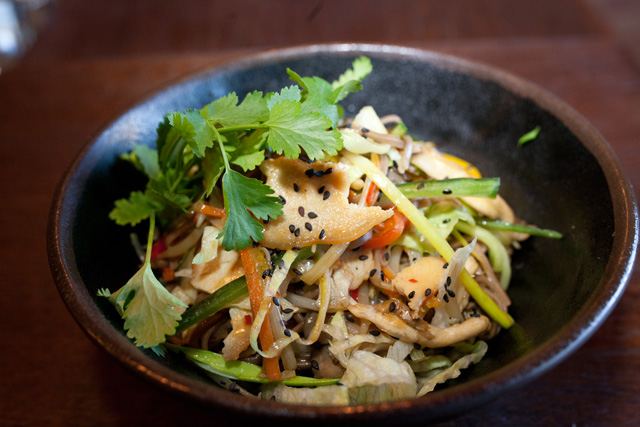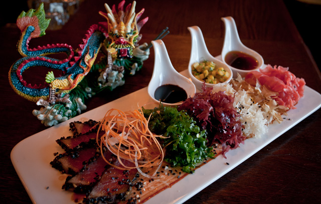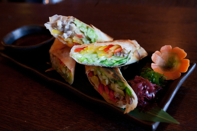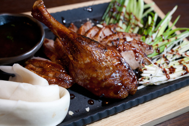 Главная героиня «Хон Гиль Дона» — утка (так и хочется назвать его за это «Хон Гиль Дак»). В виде запеченного филе она встречается как один из вариантов наполнителя для лапши, риса и спрингроллов. Маринованная утка отправляется в фирменный гонконгский суп (390 руб.). Самые продвинутые особи висят над кухней и делают это не ради красоты, а ферментации для. Половину этой птицы, маринованной в домашнем соусе и тринадцати специях (880 руб.), разделывают на ломтики филе и цельную ножку и подают с блинчиками, нарезанными соломкой овощами и слегка увлажняющим мясо соусом. Любителям классической пекинской утки не отказывают в порции соуса хойсин. Глазированные им свиные ребра (550 руб.), чуть резиновые, но сочные, мясистые и плотные, свежо смотрятся на фоне соуса из манго.