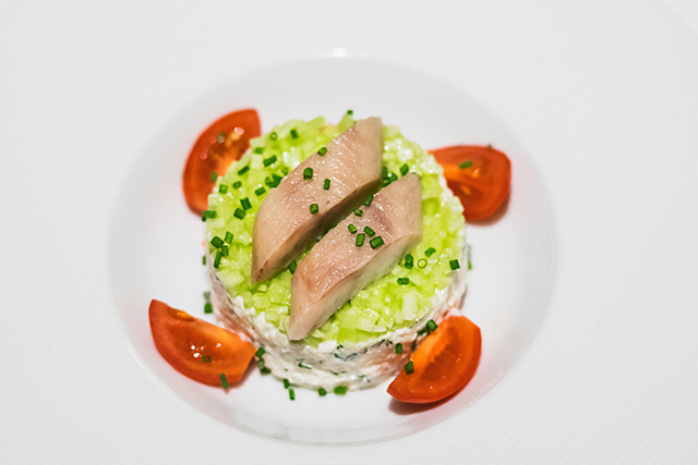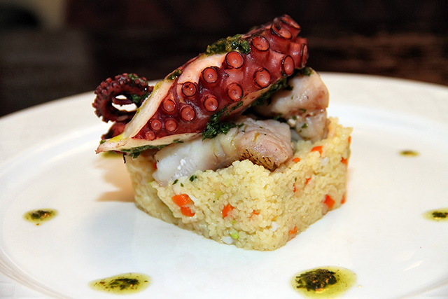 Новый шеф ресторана — сицилиец Сальваторе Гальяно, эксперт по средиземноморской кухне, в центре внимания которой всегда рыба и морепродукты. Для своей премьеры в «Рыбном базаре» Сальваторе составил меню с ярко выраженным сицилийским характером: филе тунца с конфитюром из красного лука сопровождает капоната (850 руб.), средиземноморскую барабульку дополняют маскарпоне и сочная мякоть апельсина (990 руб.), а осьминог подается с кускусом в стиле Трапанезе (1 650 руб.). Вместо тяжелых сливочных соусов Сальваторе предлагает легкие овощные, использует оригинальные сочетания свежих трав, специй и приправ. Микс морепродуктов (креветка, осьминог, кальмары и каракатицы) он подает на ложе из средиземноморской рыбы с рикоттой и лепестками тыквы, с нежным соусом из авокадо (1 800 руб.), рулет из сибаса с овощами — в лаве из тыквы и сладкого перца (1 100 руб.), а филе средиземноморской рыбы с томатами черри — в маринаде из мяты и базилика с ванилью (1 960 руб.).