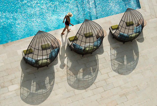 С недавних пор Ayana включает в себя концептуальный отель Rimba. И если внешне Ayana — это национальный балийский экошик, то Rimba — современный геометрический минимализм, явно отсылающий к Японии. Главная особенность курорта — вестибюль, построенный в форме ковчега. Он окружен многочисленными водоемами, а самый красивый из них — это пруд возле лобби. В него в буквальном смысле утоплены две круглые террасы, идеально подходящие для того, чтобы любоваться знаменитыми балийскими закатами. Огненно-красный свет заходящего за горизонт светила красиво отражается в воде и гипнотизирует постояльцев, забывающих в этот момент даже про снимки для инстаграма.