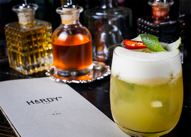Новый проект — дело рук сомелье со стажем Руслана Капкаева. Акцент в Hardy он сделал на широком выборе пива, авторских коктейлях и замысловатом меню. Среди 11 видов разливного пива можно встретить редкое для Москвы немецкое Braufactum Progusta IPA (350 руб. за 0,5 литра) или американский Anderson Valley Bourbon Barrel Stout (340 руб.), который выдерживают в бочках из-под виски. В бутылках томятся больше 50 видов пива со всего мира (в том числе и крафтового) и редкие сорта ягодного, персикового, имбирного или яблочного сидра (350 руб.). Бокал неплохого вина наливают за 220 руб.