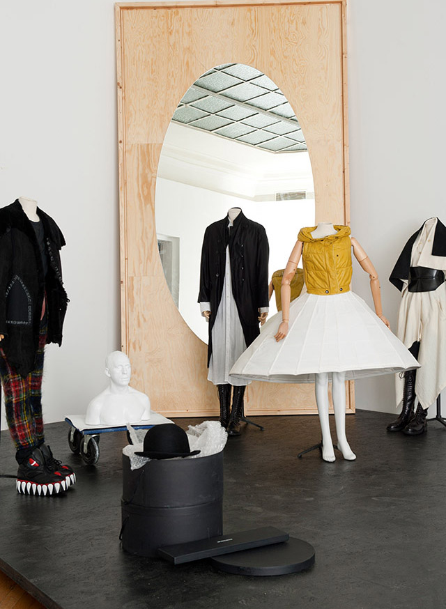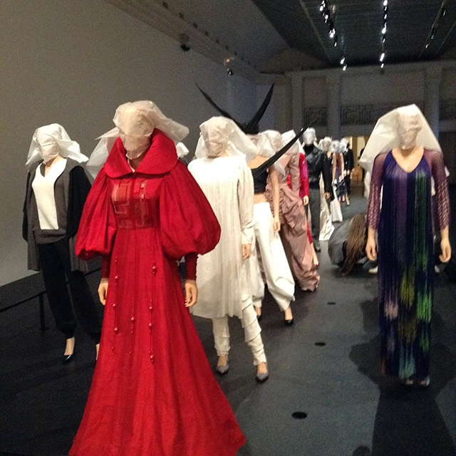 Сюрреалистичный характер бельгийского дизайна одежды подчеркивается с первого экспоната — реконструкции сюртука из ковровой дорожки Ника Вандерворста. Со знаменитыми бельгийскими сюрреалистами Рене Магриттом и Фрицем ван дер Берге были дружны основатели Maison Norin, близкого по стилю к дому Chanel. Армия из сорока манекенов с затянутыми папиросной бумагой головами демонстрирует выбивающуюся из мейнстрима моду 70-х — начала 80-х: эксперименты с трикотажем, многослойностью, принтами, эпатажными аксессуарами вроде седел вместо поясов. Вероник Леруа, Бернхард Вильгельм, Вероник Бранкино, Питер Пилотто, Жан-Поль Нотт, Крис Ван Аш, Джозефус Тимистер — все стоят рядом.