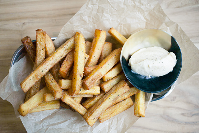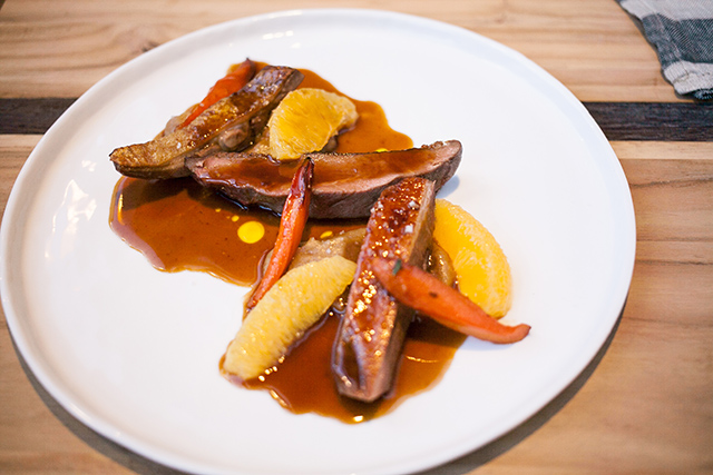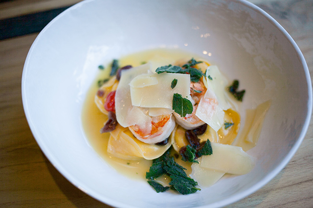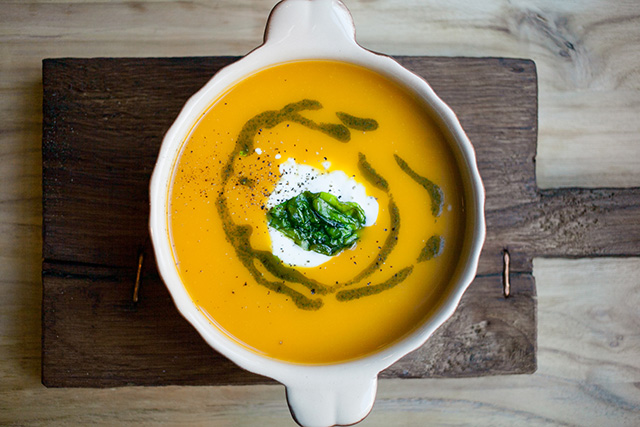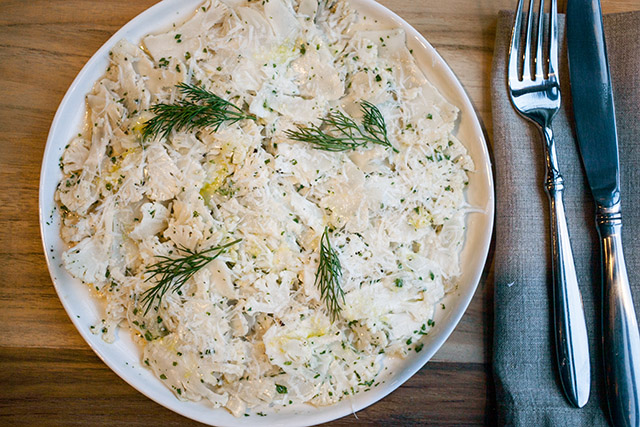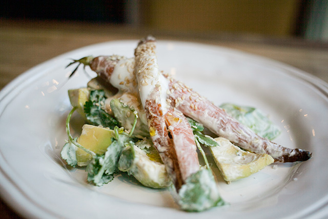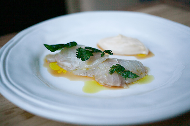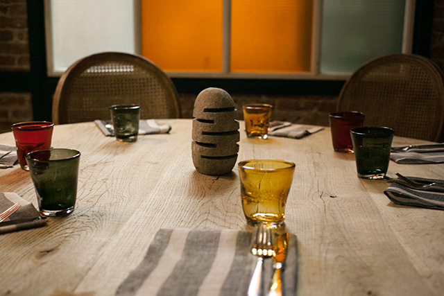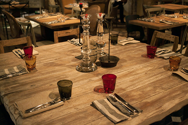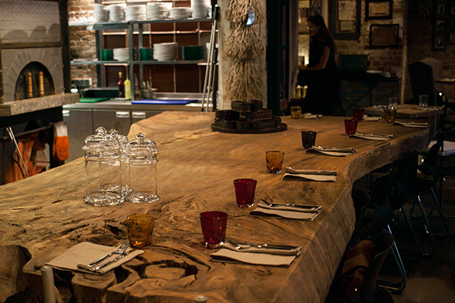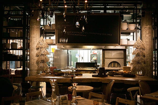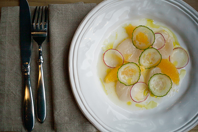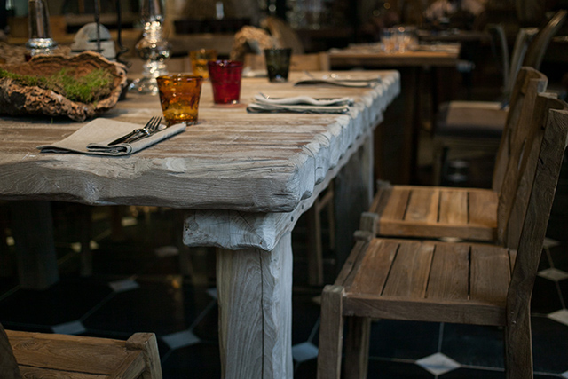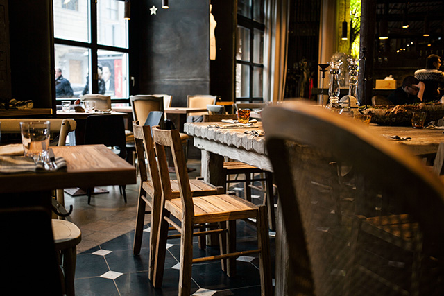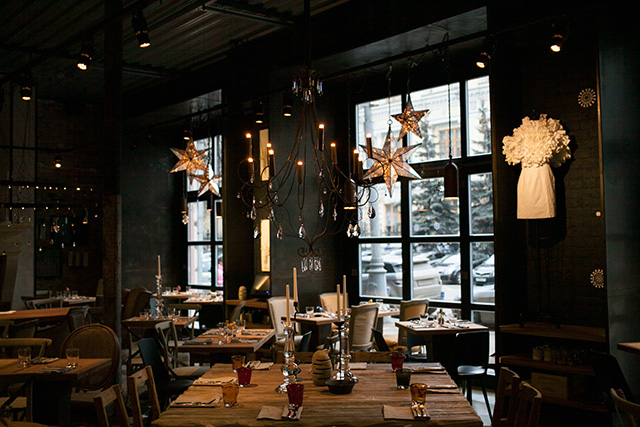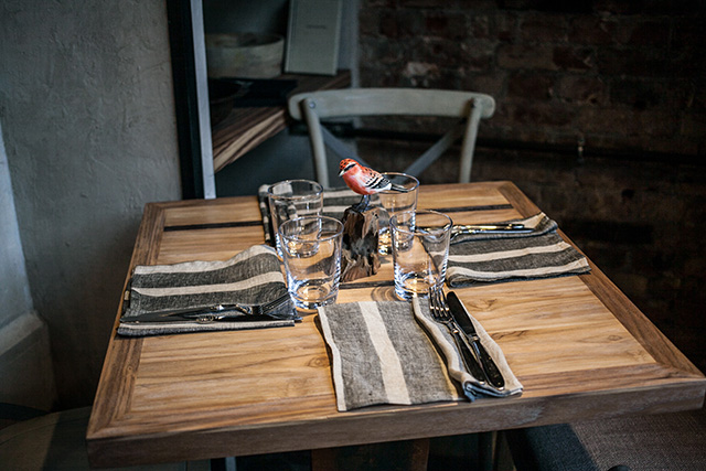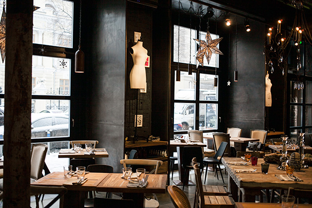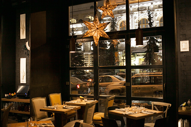 Помимо разнообразных, но не бьющих по глазам интерьерных забав, ресторан серьезно украшают две вещи: гигантских размеров стол из яванского суара, который долго продавался в Leform и в конце концов отлично вписался перед открытой кухней заведения, и действующий камин. За первым прекрасно ведутся споры о смысле жизни и способах приготовления цветной капусты (непременно попробуйте карпаччо из цветной капусты с понзу, трюфельным соусом и укропом), второй наполняет весь зал живым теплом и тем самым ароматом, который не позволяет сделать ни шагу прочь.