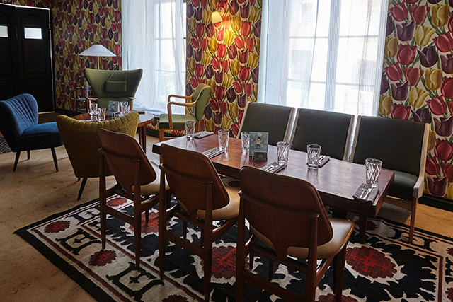 «Ломбард» спроектирован Кирой Гришиной — дизайнером «Дома быта». Две логические зоны выполнены в скандинавском стиле с явной любовью к 50-м. Первый зал — пространство с барной стойкой внушительных размеров и окнами в пол с видом на вечную пробку Садовой улицы, второй — с яркими принтами на стенах и камином, который даже собираются топить. В итоге — уютно и свежо, к тому же выгодно отличается от существующих заведений, как самой «Гинзы», так и других проектов схожего формата.