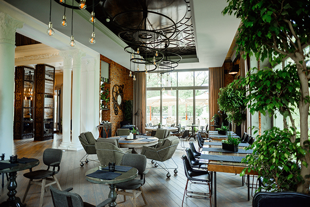 Одна из самых прекрасных летних веранд прописана в Ботаническом саду «Аптекарского огорода» — цветы, загородная свежесть, пение птиц и тишина! Просторная веранда с уютной садовой мебелью в прямом смысле слова утопает в зелени. На веранде есть отдельный бар и собственная коптильня. Летом шеф-повар будет предлагать сеты блюд из коптильни для компаний, чтобы ощущение загородного пикника было наиболее полным.