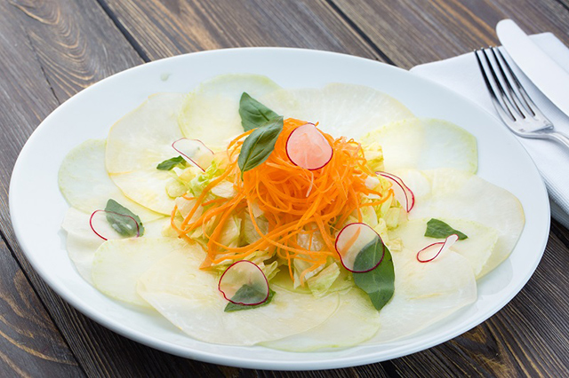 О том, что в Beer & Brut перешел на летнее время, отчетливо свидетельствуют два события: открытие веранды и отредактированное меню. У последнего — легкий нрав и азиатский акцент. Имбирь, лемонграсс и пряные травы отлично сочетаются с белым вином. Ко всеобщей радости на кухню вернулись прикидывающийся хинкали тартар из сибаса и форели, завернутый в рисовое тесто, радостно приветствуемый в соцсетях хэштегом #мозгперельмана кочан цветной капусты, запеченный с морской солью и разнотравьем, и запавшая в душу убежденным мясоедам пицца с ростбифом.