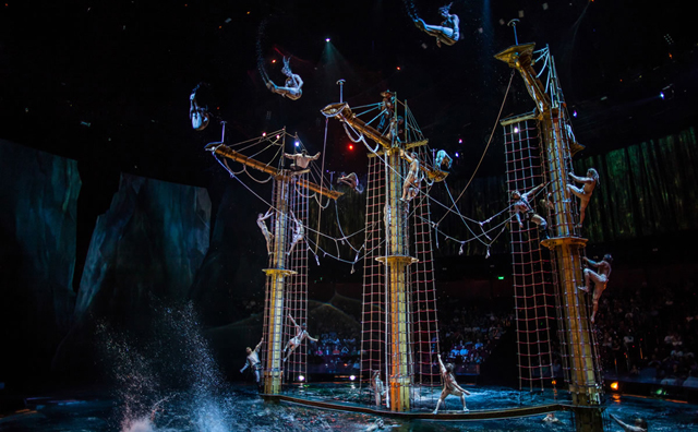 Если же вы хотите получить шквал невероятных эмоций, не выходя из своей зоны комфорта, тогда вам точно стоит заглянуть на шоу «Дом танцующей воды». Создатели Cirque du Soleil потратили ни много ни мало 5 лет на то, чтобы представить на суд публики самое фееричное водное представление. Сцена-бассейн, музыка, иллюминация, графический фон, яркие костюмы, сказочные декорации и потрясающее исполнение трюков акробатами и артистами на мотоциклах — все это вместе создает полное ощущение присутствия в самой настоящей сказке. Сюжет шоу очень романтичный, но его роль второстепенна: мастерство исполнения завораживает настолько, что все остальное просто отходит на второй план. Только учтите, билеты на «Дом Танцующей воды» расходятся неимоверно быстро, поэтому покупайте их заранее. Что касается выбора места — обзор хорош с любой точки, но, конечно, центральные места самые «лакомые».