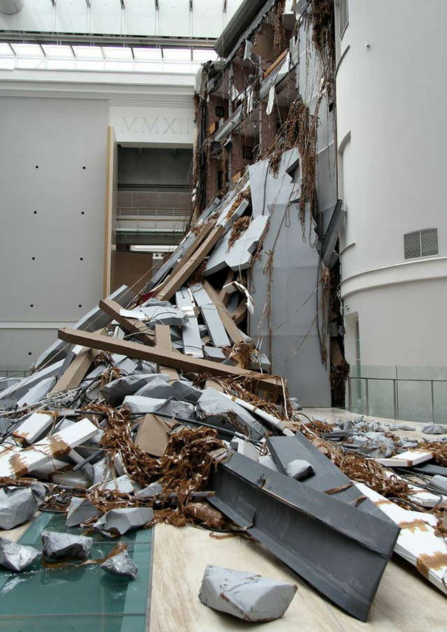 Следом — самая впечатляющая инсталляция — "Срез" швейцарца Томаса Хиршхорна, которого мы показывали в Москве в пространстве Baibakov Art Projects на Павелецкой набережной летом 2010 года. Блокбастер времен Советского Союза: здание без фасада с шестью коммунальными комнатами, на стенах которых висят подлинники Малевича, Филонова и Розановой.