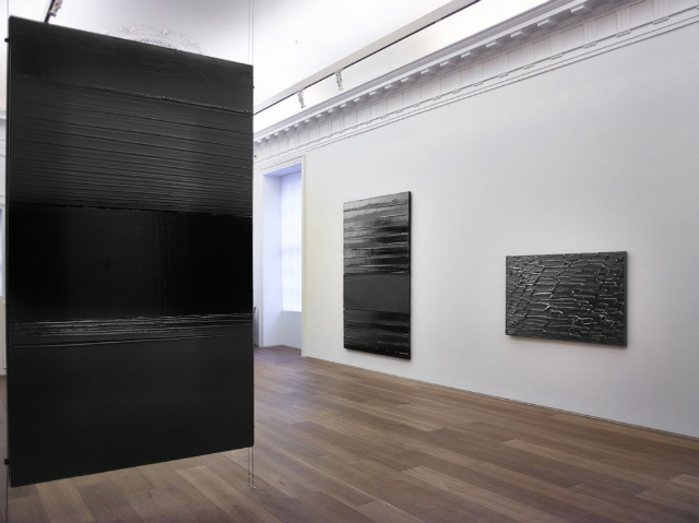 Вернемся же в конец апреля. Мне очень нравится, насколько европейским становится Нью-Йорк и как стираются трансатлантические границы в мире искусства. Американские галереи "всплывают" в Лондоне, а европейцы перебираются в Большое яблоко. Свежий пример  открытие лондонской Simon Lee Gallery в Нью-Йорке 9 мая. Или отличная параллельная выставка француза Пьера Сулажа в Galerie Perrotin и Dominique Levy Gallery, которую привезли из Парижа галеристы Эммануэль Перротан и Доминик Леви (она живет в Нью-Йорке, но у нее швейцарское происхождение). Сразу вспомнила присказку "В одном черном-черном городе, в черном-черном доме...". Другого цвета здесь просто не было. Смешной парадокс: на выставке вас не покидает ощущение, что вы открыли для себя новую "горячую" молодую звезду в мире искусства. Каково же удивление, когда оказывается, что художнику уже 94 года!