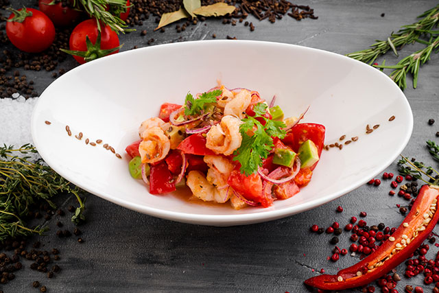 Точно так же хорош паштет из куриной печени (480 руб.), раскрывающийся вкусом молочной кукурузы: на кухне используют цыплят, откормленных кукурузным зерном. Салат из томатов, авокадо и креветок (235 руб.) прост как дважды два и как дважды два гениален. Шелковый авокадо на пике спелости, сочные креветки, сладкие, сочащиеся помидоры складываются в венец творения. Именно такая еда позволяет понять, какую роль на самом деле в кухне играет исходный продукт.