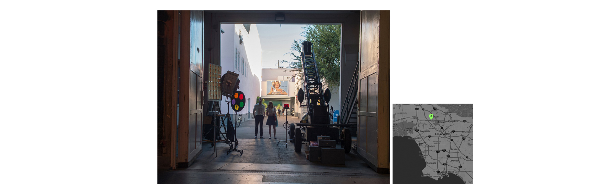 Кофешоп в Warner Bros., где работает Миа, — вымышленный, но на студии действительно много похожих настоящих мест. Кафе установили напротив дома, окно которого было задействовано в фильме «Касабланка» (1942). Позже режиссер дописал для героини любовь к этой картине.