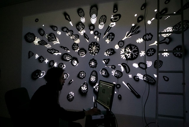 «По сути, у каждого художника получилось две выставки: обычная и виртуальная. Для того чтобы создать виртуальное произведение, нужно научиться работать с особой матрицей в виртуальной комнате. Художник ходит внутри этой "комнаты" и специальным контроллером рисует объекты. Для художника это крайне необычная ситуация: ты стоишь внутри сети, будто бы в 3D-программе, и сам создаешь новые формы, рисуешь новые объемные объекты и постепенно наполняешь ими пространство. Над виртуальной частью своей работы я трудился около недели.