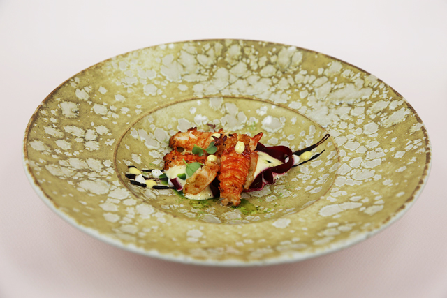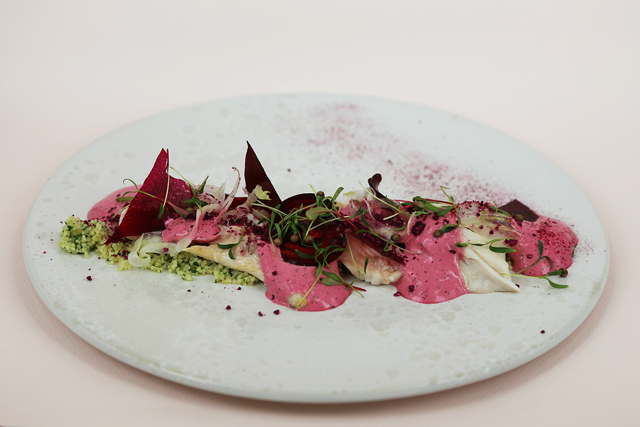Каждому региональному водоплавающему — беломорской зубатке (450 руб.), ладожскому сигу (450 руб.), мурманскому гребешку (1150 руб.), алтайским ракам (1300 руб.) — назначено особое растительное партнерство. Одна из самых вдохновляющих пар — угорь с гречкой. Жирность угря деликатно компенсирована пенным биском, а чернила каракатицы определяют сладковато-сливочное гречотто в разряд «морских» гарниров (1300 руб.). А вот прозрачное карпаччо из муксуна (700 руб.) почти не тревожат посторонними нюансами, только тарелка, вылепленная на гончарном круге в датской крафтовой мастерской, подчеркнет его кастовость.