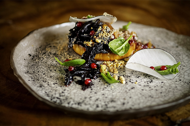 Для пуристов предусмотрены папарделли из устричного гриба (630 руб.). Пасту, жующуюся как хорошо приготовленный кальмар, режут прямо из грибного тела и подают со сливочно-трюфельным соусом и пудрой из оливок. Еще она вещь — варенье из черных лисичек. Вместо какого-нибудь лукового мармелада им снабжают паштет из утки на бриоши (590 руб.). Отчетливый тон брусники, с которой варят лисички, тут весьма кстати. Древесные грибы, у которых нет ни вкуса, ни запаха, зато замечательная текстура, сопровождают паровой палтус с икрой из сока юзу (720 руб.).