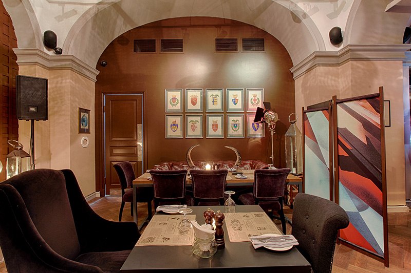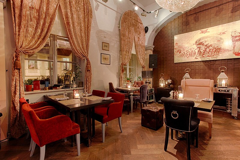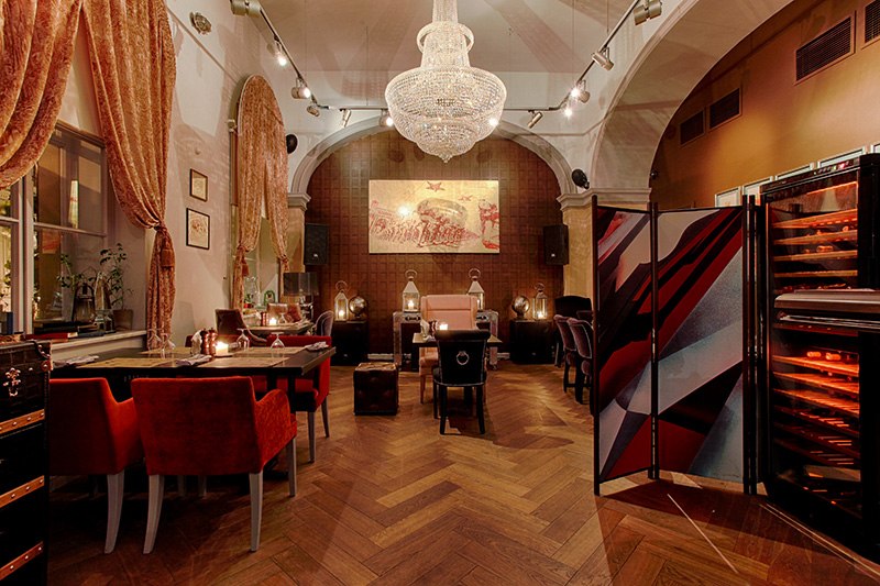 Возвращаясь к теме интерьеров, нельзя не отметить игру с историческими эпохами. Бархатные кресла, коллекция картин, хрустальная люстра, приглушенный свет создают притягательную атмосферу литературных салонов начала XX века только на новый лад.
