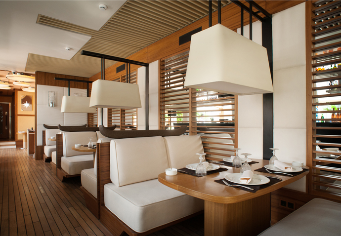 Изначальный план подразумевал создание светлого и "живого" пространства на чердаке ресторана Nobu, такова была задумка архитекторов и дизайнеров. Как можно больше природных материалов: пол из досок, доски — из тикового дерева, стулья и столы также из древесных пород. Некоторое, в общем, напоминание об обеденной зоне круизного лайнера.