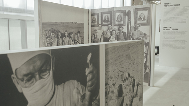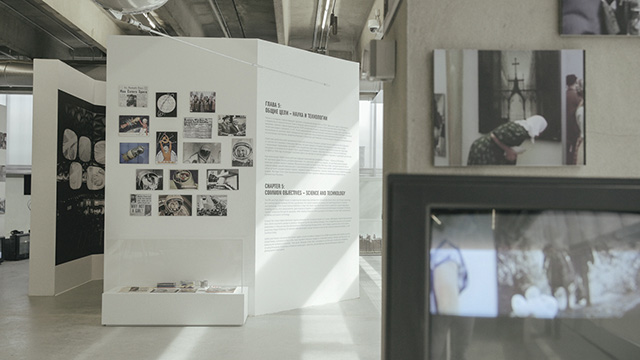 Под равномерный стук пинг-понговых шариков можно рассмотреть и другие пространства музея, в которых обнаружится, к примеру, проект «Полевые исследования», состоящий сразу из четырех частей. «Полевые исследования» — это на самом деле целая междисциплинарная программа «Гаража», вот уже три года изучающая события, героев и философские установки русской культуры. Разумеется, никаких известных заранее результатов у проекта нет — кто знает, куда заведут поиски? Сейчас на экспозиции можно увидеть, что получилось у Койо Коуо и Раша Салти — «Спасти Брюса Ли: африканское и арабское кино и эпоха советской культурной дипломатии», Тарин Саймон — «Черный квадрат XVII», Антона Видокле — «Это космос», и группы исследователей, работавших над масштабной темой «Лицом к лицу: американская национальная выставка в Москве. 1959/2015».