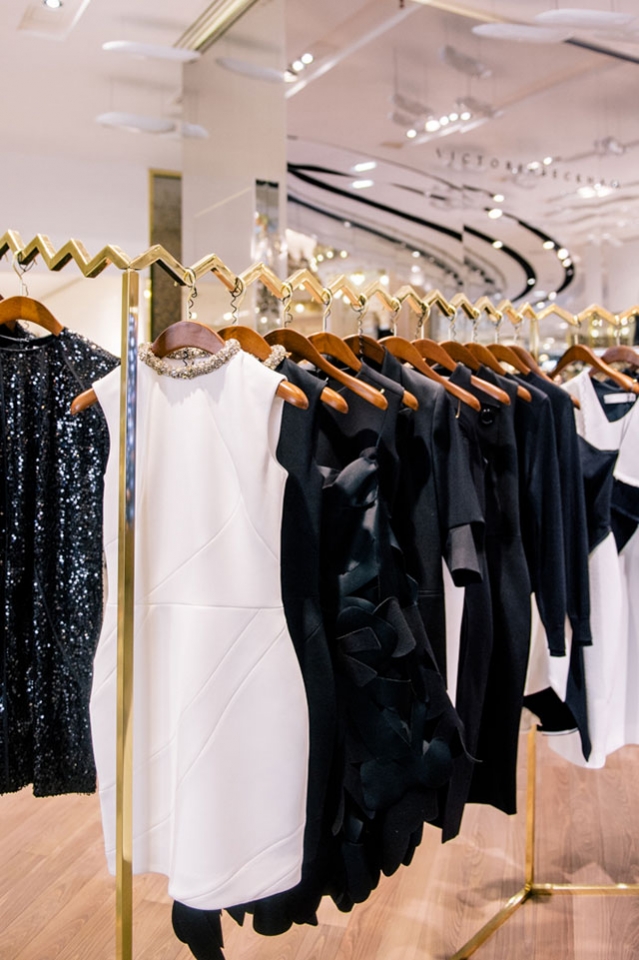 Первый, второй и третий этаж занимают бутики, украшенные новогодними инсталляциями с манекенами, одетыми в вещи самых разных брендов. Все подобрано стилистами в празднично-космической тематике с преобладанием белого и синего цвета, многообразием пайеток и блесток. Здесь вы найдете, пожалуй, одну из самых интересных частей Galeries Lafayette — корнер-лабораторию, проект, который помогает молодым дизайнерам попасть в бутики торгового центра. В случае если продажи идут успешно, новоиспеченному бренду предлагают сотрудничество на отдельной площадке универмага. Сейчас в корнере представлены марки Dice Kayek, Pascal Millet, Roksanda, сумки от Olympia Le-Tan и другие бренды. Решить, в чем же встречать Новый год, непросто, но среди всего здешнего многообразия то самое платье точно найдется.