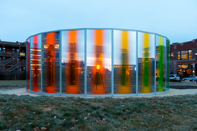 Работу "Panoramic Awareness Pavilion" можно считать ее мини-версией — датско-исландский светохудожник снова обратился к радужному мотиву и выстроил павильон в скульптурном парке John and Mary Pappajohn штата Айова. Разноцветный цилиндр составлен из 23 стеклянных панелей, частично тонированных и окрашенных в фиолетовый, синий, зеленый и другие цвета радуги, а внутрь него Элиассон поместил прожектор с линзой Френеля.