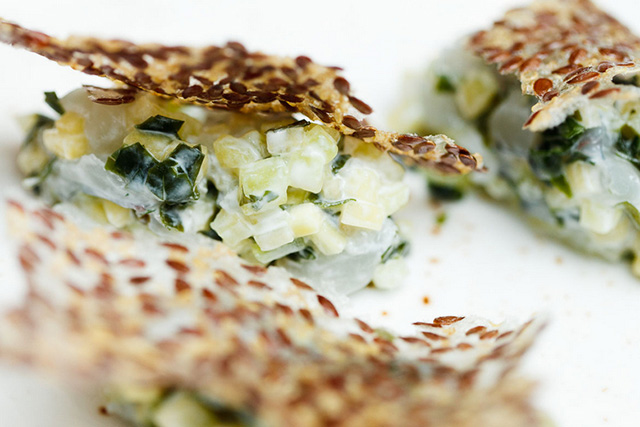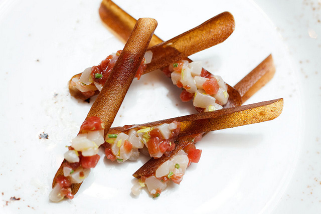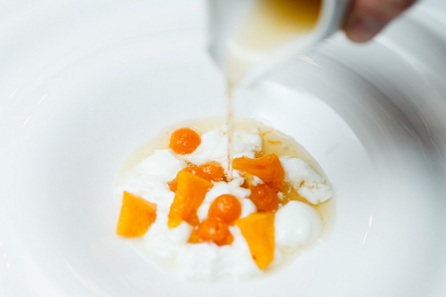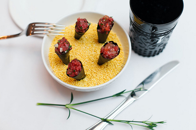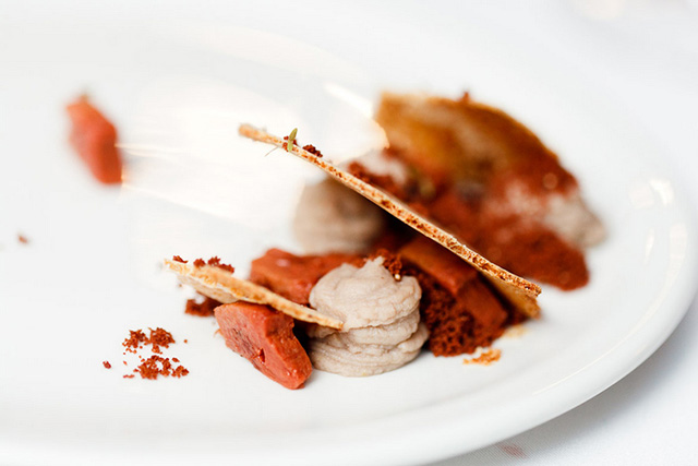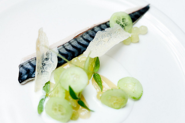Приведу несколько примеров. Мы уже привыкли к тому, что тартар из говядины всегда оттеняют кислой нотой — уксусом, как правило. Но на самом деле такое сочетание не подчеркивает вкус и качество мяса, а ровно наоборот — прячет его недостатки. Илья Кокотовский подает тартар в пергаменте из свеклы. Перво-наперво думаешь, что нет ничего отвратительнее подслащенного сырого мяса, но мощное и сбалансированное послевкусие отрезвляет затуманенный разум, и ты уже тянешься за следующим кусочком. Скумбрия в северном стиле: огурец в данном блюде настолько филигранно нивелирует яркий и знакомый вкус этой рыбины, что на выходе получился третий оттенок — ровный и нежный, без экстрима.
