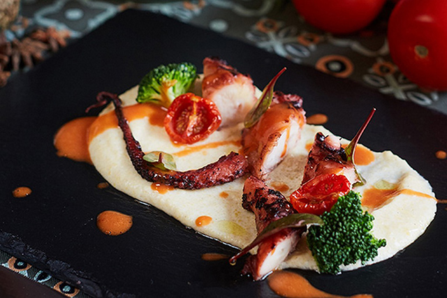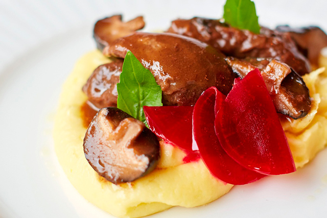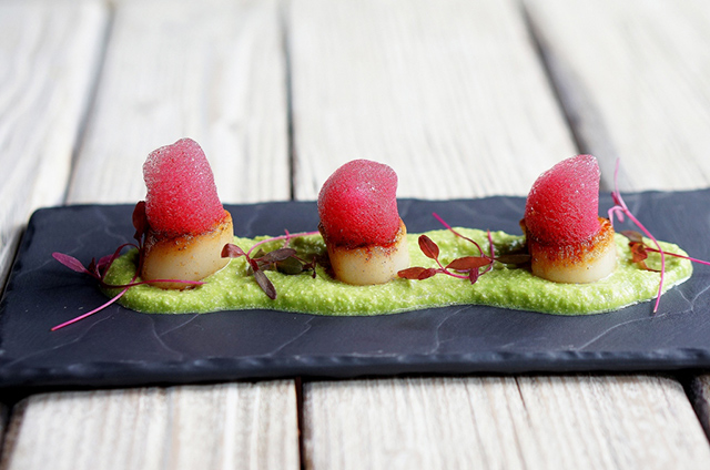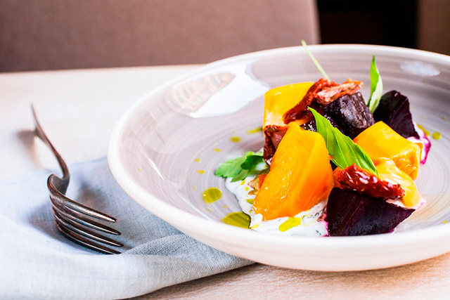 Пристрастны к желе и глазури: шарики моцареллы глазируют томатами черри (290 руб.), куриное пате покрывают апельсиновым желе (250 руб.), а в салат из камчатского краба и авокадо кладут желе из краба и лимона юзу (390 руб.). Или выстраивают блюдо по формуле «мясо + овощной крем + яркий плодовый акцент» и рождают нетривиальные сочетания: филе оленя, пастернак и слива в вине (590 руб.), утиная грудка, цветная капуста, карамелизованная айва (580 руб.)