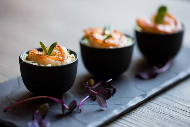 Имбирный сорбе тает «живой водой» на горке тартара из тунца с кукурузным чипсом, исполненным в виде обломка крабового панциря (490 руб.); крем из рукколы окутывает нежным покрывалом жареные королевские креветки (остроумная вариация на тему главного салата нефтяных нулевых, 420 руб.); крабовое мясо «упаковано» в крокеты и доведено до паназиатской огненности ореховым соусом и взвесью пяти перцев (480 руб.); гребешки-корешки с шапками из свекольной пены «вырастают» из мусса зеленого горошка (340 руб.); равиоли начинены полувоздушным фаршем из камчатского краба и шпината (420 руб.); а сноп салатных листьев с теплым кроликом заправлен морковным муссом (390 руб.).
