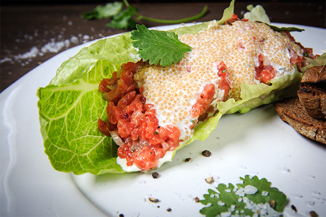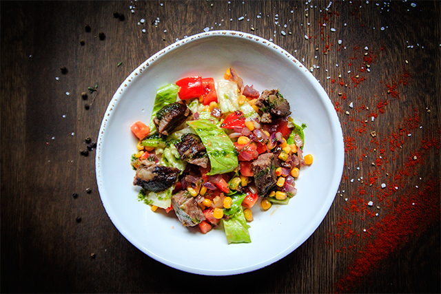 Основные блюда готовят в коптильне или на гриле. Есть камбала и бургер с говядиной из хоспера, корейка барашка, форель и брискет. Превосходна половина варено-копченой утки с кольраби и попкорном из перловки (490 руб.), стриплойн (950 руб.) жарят в хоспере, обогащая его вкус дымком, а вот чак-ролл (620 руб.) после сувида и копчения превращается в бесхарактерную тушенку. Примерно такое же недоумение вызывает пастрами в темной пите (365 руб.). По сути это бургер (в нем фигурирует даже расплавленный чеддер), в котором пастрами назван томленный в сувиде кусок мяса, никакого отношения к маринованному, копченому и приправленному специями деликатесу не имеет. Но кому какое дело? Плотному вину с насыщенным ароматом он составит неплохую компанию.