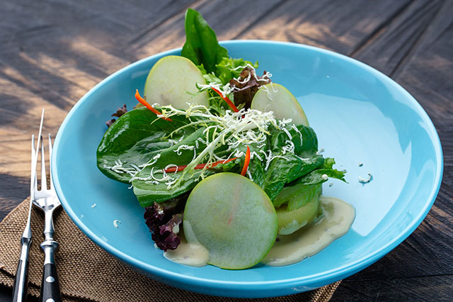 Говяжьи щечки в самом деле нельзя приготовить в одной емкости с ложным ризотто из корня сельдерея (750 руб.), что не умаляет виртуозности идеи: оттенить сладковатое мясо отдающим землистой пресностью корнеплодом решится не каждый. Тунец тоннато с молодым кабачком и зеленым шпинатом (450 руб.) — салат необременительный, легкий и с явным курортным оттенком — плод авторского взгляда на итальянскую кулинарную традицию (помните вителло тоннато?), так же как и шарлотка из баклажана с сыром сулугуни (450 руб.), дальняя родственница Parmigiana di melanzane. Взбитый в воздушную пену копченый сулугуни укрывает кипенью плотные, почти хрящеватые ушки равиоли со шпинатом (350 руб.).