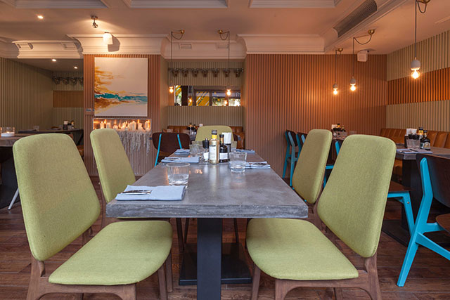 Два последних блюда значатся в разделе One Pot Greens, в котором собраны блюда для вегетарианцев. В рыбном разделе фигурируют мурманская треска с луковым пюре (650 руб.), сладкой волной которого непременно надо сдабривать рыбу, соте из мидий (620 руб.) и каннеллони с креветками (750 руб.). Главные звезды мясного департамента — мильфей из индейки с молодой капустой (370 руб.) и оссобуко из индейки с глазированной морковью (580 руб.). Оба — совершенно новаторские идеи. Первый представляет собой треугольные скалы собранного из прослоенного латуком фарша индейки с булгуром, покоящиеся на ложе из насыщенного грибного соуса. Второе — натуральное оссобуко, только из ножки индейки, а не говяжьей голяшки. Сладкая морковь добавляет ему столько шика, что не хочется и замечать мелкие косточки, справиться с которыми пока шефам не удалось.