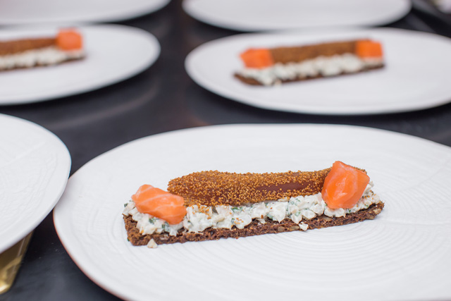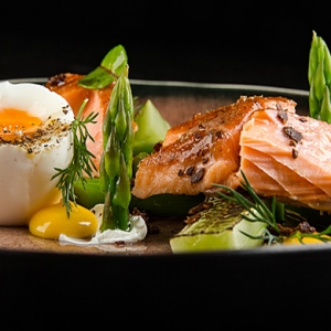 Взбитое с йогуртом вологодское масло с трюфельной сальсой подают к «хрустяшкам» с льняными семенами. Облачко масла не оседает, держит форму даже через два часа, а хлебцы, которые выглядят сухими, оказываются рассыпчатыми и нежными. К «смореброду» придумана намазка из соленых груздей со сметаной, поверх которой выложена малосольная икра сельди, панированная для более яркого вкуса в сушеной сельдяной икре, и низкотемпературные желтки. Вкус такой ностальгический и такой пронзительный, что пропускаешь мимо ушей стрекот сомелье Виталия Музыченко, предлагающего угадывать подаваемое в слепой дегустации вино. На винных вечерах по средам он рассказывает о винном ландшафте планеты так, что невольно засомневаешься в правоте традиционной энологии.