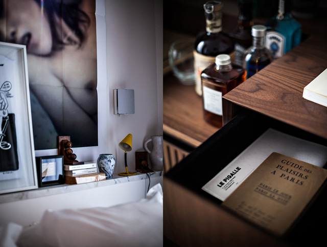 Авторы проекта Le Pigalle не забыли об исторических особенностях места, в котором расположился новый отель. Красные фонари до сих пор являются главной ассоциацией, возникающей при упоминании района Пигаль. Соответствовать фривольной теме позволяют плакаты, вырезки из журналов и другие провокационные картинки, со вкусом развешенные в номерах гостиницы, обстановку которой без преувеличения можно назвать богемной.