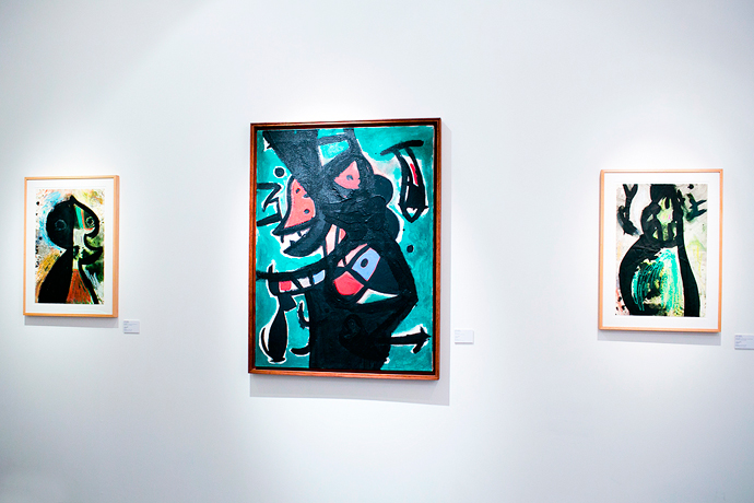 Все остальные залы, как задумали организаторы Эльвира Камара Лопес и Мария Луиза Лакс Качо, были посвящены главным образам и темам в его творчестве: графическим знакам, пейзажам, птице, созвездиям, глазу, женщине, персонажу и голове. Особенное место отвели документальным кадрам и материалам о жизни художника, которые еще больше рассказывают о том, как реалистичные формы в его работах замещались абстрактными геометрическими фигурами, каким был полет его фантазии и что за удивительной личностью был Хуан Миро.