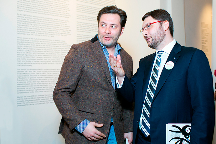 В вечер открытия в музее то и дело звучала испанская речь, а работы Миро вместе с организаторами и высокопоставленными гостями из родной страны художника рассматривали Владимир Мединский, семья Куснирович, Ольга Свиблова, Юлия Бордовских, а также многие другие гости.