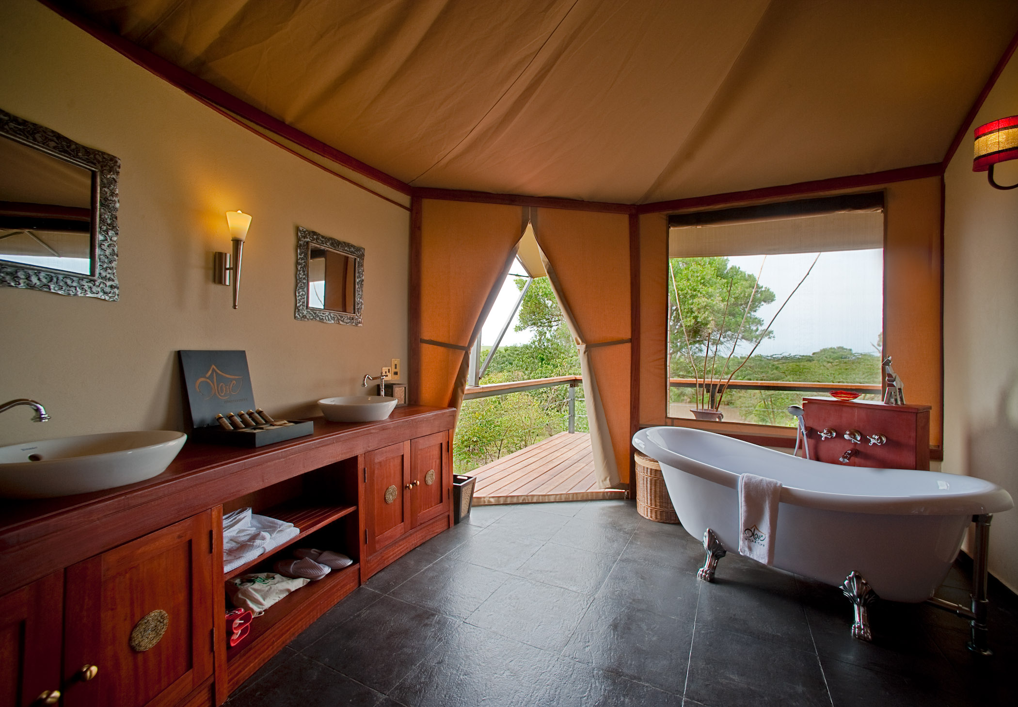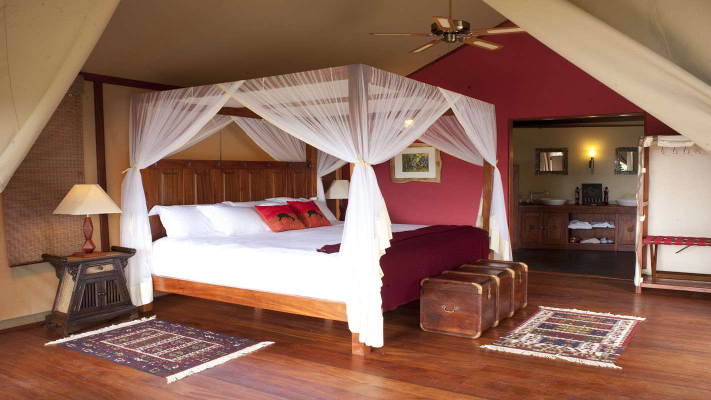 Каждая палатка площадью 80 квадратных метров оформлена в классическом стиле великого африканского сафари с двумя односпальными или двуспальной кроватью с балдахином, открытыми и закрытыми душевыми, старомодными ваннами, а одна из палаток и вовсе располагает собственным бассейном.