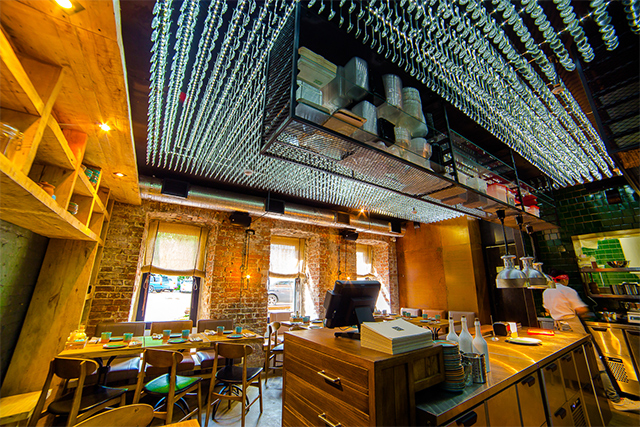 Название Patarа (в переводе с грузинского означает «маленький») — более чем оправдано. Вход в кафе — прямо из арки, ведущей во двор. Дверь открывается едва ли не на кухню. Впрочем, тут в любом углу будет казаться, что вы на кухне. Она занимает почти все помещение, прижимая к периметру невесть каким чудом расставленные столики на 55 гостей. Если бы кухней заведовали какие-нибудь Манана и Тамара, вы бы почувствовали себя в гостях в тбилисской квартире. Но кухней руководят Ника Метревели и Илия Бенашвили, и это переводит ваш визит из статуса домашних посиделок в гастрономическое приключение.