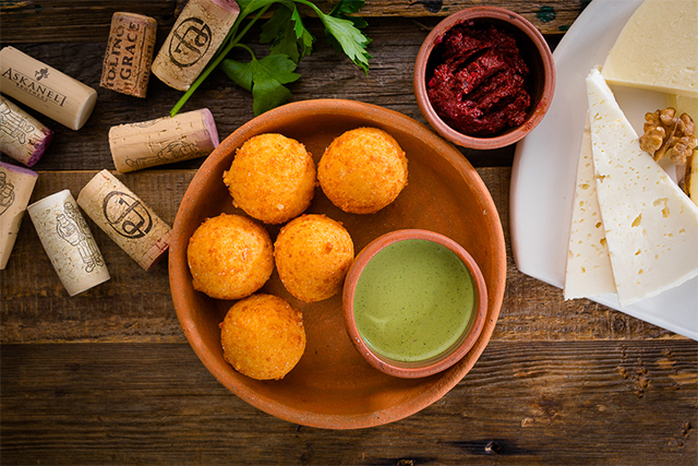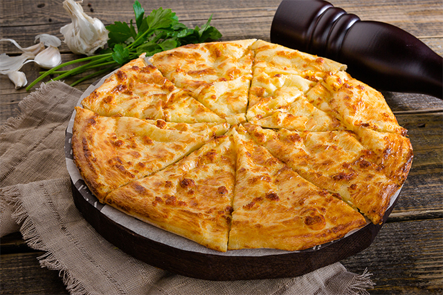 Самый показательный пример — пхали (370 руб.), подающиеся как тапас, и чвиштари (390 руб.), которые здесь вовсе не кукурузные лепешки с сыром, а запанированные в кукурузной муке и обжаренные во фритюре сырные шарики с мятной аджикой. Харчо (610 руб.) у Ники и Илии — не суп, а дальний родственник бефстроганова с рисом. К тушеной сладковато-солоноватой телятине подают гоми, кукурузную кашу и кисловатый гранатовый соус. В этой смеси вкусов особенно очевидно становится, почему харчо имеет такой успех. Грибной чакапули (370 руб.), чуть кисловатый из-за добавленного в него уксуса, — свежий и легкий вариант горячего, но не обжигающего летнего супа, сродни щавелевой похлебке. Сациви из курицы (590 руб.) самый обычный на вкус, но соус для него делают не на бульоне, а на воде, так получается легче для желудка. Едва заметный кислый дух — живой, летний и очень дачный — исходит от больших, величиной с тарелку, слоеных пирогов с сулугуни и пореем — хловани (370 руб.).