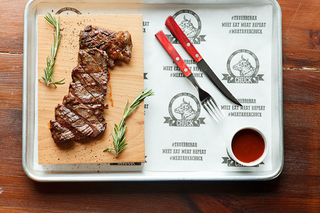 Meat area — английское словосочетание, которое характеризует место довольно точно, — рыбу вы здесь точно не найдете. Овощи — только на гарнир, коктейли в здешнем баре — и те на мясном бульоне. Речь идет о ресторане Chuck на Гороховой улице в Петербурге.