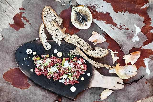 Собственно говоря, у меню этого ресторана нет целостности, как и у большинства других. Так что гости не окажутся втиснутыми в рамки. Здесь найдете перловку с боровиками, ароматную настолько, что думаешь, не согрешил ли повар, добавив в блюдо пару капель трюфельного масла; тартар из вполне себе приличного мяса с тонким, едва уловимым ароматом дыма, перемешанный с маринованными огурцами и муссом из репчатого лука. Тут же, несколькими строчками ниже, расположился салат из печеной свеклы, соленого козьего сыра и сладкой хурмы, заправленный майонезом из манго. На десерт предлагают "яйца". Выглядит это блюдо весьма оригинально: шоколадная "скорлупа", внутри которой "белок" из суфле "птичье молоко", а вместо "желтка" растекается мандариновый соус. Любители аутентичного птичьего молока окажутся в расстройствах: очень яркий вкус мандарина не оставляет шансов суфле проявить себя на нёбе.