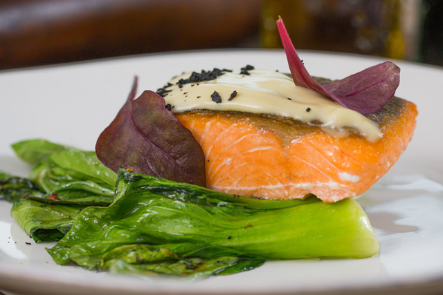 Готовить в таком месте что-то кроме средиземноморской кухни было бы просто глупо. Здесь интересно делают севиче из сибаса (780 руб.) — с фенхелем, розовыми томатами и базиликом. Тартар из воронежской говядины (890 руб.) лучше смешать с пронзительной пеной из сыра пекорино, чтобы его острые ноты пронизали мясо. Несомненный хит — теплое сашими из лосося (620 руб.) с терияки и кунжутом. Едва прихваченное огнем мясо в сладко-пряном соусе раскрывает весь свой нежный вкус. Нетривиальные гарниры — жареные кабачки (220 руб.) или шпинат с изюмом (360 руб.) — аккомпанируют блюдам с гриля.