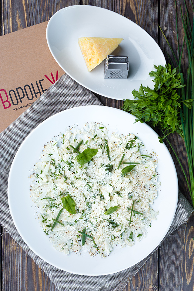 При этом кухня российских провинций, к которым и Воронеж относится, понимается не как этнографический свод рецептов, а как жизнь продуктов, попавших в руки бренд-шефа Сэбби Кэниона. Поэтому разбитое на «Овощи», «Рыбу и морепродукты», «Супы», «Крупы и тесто», «Птицу», «Не просто мясо» и «Мясо» меню сообщает нам в первую очередь о продукте с максимальной привязкой к местности, а уж затем о блюде. «Луховицкие огурцы, мак, кинза, деревенское подсолнечное масло первого отжима, сок сливы» (160 руб.) — сказ о том, как русский китайца на своей территории побил, а не просто очередная вариация на тему битых огурцов. «Цветная капуста, истринский пармезан, понзо соус» (280 руб.) — 2.0 версия карпаччо из цветной капусты, которое Кэнион делал в Lesartist, хотя и первый вариант казался идеальным. Кольраби вступает в диалог с репой (240 руб.), а редис с зеленым горошком (360 руб.) солируют в полифоническом хоре с ялтинским красным луком, огурцами, выжимкой из гороха нут, пастой из семечек кунжута и льняным маслом. Вообще, все, что связано с овощами, в «Воронеже» почти всегда оказывается превосходным, хрустким, звонким и бодрящим как прохладное утро.