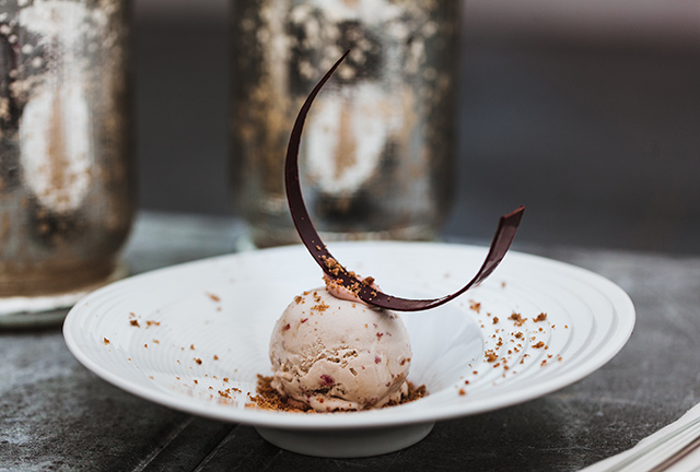 Шеф Евгений Мещеряков, бегло перечисляющий в своем резюме отель «Националь», московские «Недальний Восток», «Павильон» и Simachyard, ростовский «Паулинг» и парижский Taillevent Алена Дюкасса, так описывает свою кухню в «Блоке»: «Наши гости ищут вкус яркий и выразительный, в чем-то эклектичный, и я ищу способы их желание удовлетворить». Многослойная оптика Мещерякова позволяет ему готовить голубцы, хашламу, пельмени, сибаса по-сычуаньски и крем из ряженки с вяленой клубникой. Мещеряков угощает настойкой на черноплодной рябине и вишневых листьях по рецепту своей бабушки и отправляется снимать пробу с нового блюда гжельской ложкой, которая у него всегда с собой. Удивительно, как она перекликается с агатами, которыми выложена барная стойка «Блока».
