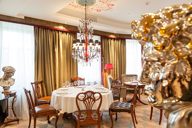 Эклектичный подход в разработке концепции, смешение противоположностей — Раппопорт действует как заправский арт-директор большого модного дома. Только если в Москве он открывал пока что монобутики, то в Питер привез концепт-стор. В нем и проверенная благосклонностью публики «Живаго» тяга к наследию авангардистов в декоре и сытной простоте еды, и проверенные временем рецепты «Мясного клуба», и ловкие приемы по созданию столичной атмосферы, равно притягательной и для бомонда, и для элит. Все это совершенная новость для Петербурга, в котором нет ничего похожего на большой парадный ресторан в современном духе.