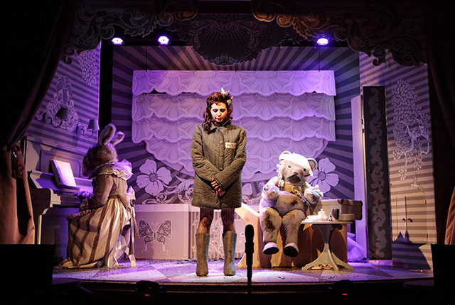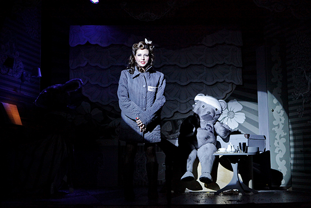 Когда занавес торопливо покидает зал, всем присутствующим представляется весьма гротескная сцена: в комнату, где уже сидит героиня, входит исполинская крольчиха — будто со страниц произведений Льюиса Кэрролла. Не теряя времени даром, гостья садится за фортепиано, и с первым прикосновением лапки к клавишам начинается странное, одновременно зрелищное и медитативное действо. С первых слов провокативные песни Летова диссонируют с, что называется, "ванильной" обстановкой девичьей комнаты и обликом героини. Единственное, что парадоксальным образом гармонирует с песнями, — ковыляющий по сцене плюшевый медвежонок. Вид у потрепанного выходца из мира детских грез почти инфернальный.