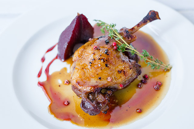 В богатом прованском томатном соусе с ароматом пряных трав и чеснока подают лишенных панцирей улиток (520 руб.). Это одно из самых удачных блюд в меню, сравниться с которым по совершенству простой формы может разве что кассуле из утки и свинины с фасолью (620 руб.). В него бережливый Лекуан добавляет фаршированную свиным фаршем и утиной печенью утиную шею, и это настоящее сокровище, заставляющее нашедшего его счастливо улыбаться весь день. Бланкет, томленая в сметанном соусе телятина (640 руб.), подается с рисом. Одним этим блюдом вполне можно насытиться, хотя порция не выглядит объемной.