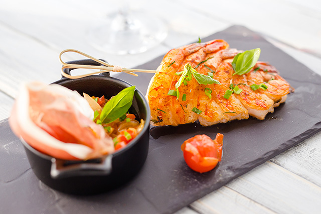 В тарелках Лекуана все просто, внятно и вкусно. Меню, некрохотное, но и неизбыточное, предлагает салаты, горячие закуски, супы, блюда из рыбы и морепродуктов, мяса и птицы, гарниры и десерты. Отдельная история — аперо. Это такие крошечные и почти моментально подаваемые закуски, которые позволят утолить первый голод, но не перебьют аппетит хлебом с маслом. Среди них отмечу превосходный, не обдирающий небо жесткой коркой крок-месье с ароматом трюфельного масла (230 руб.) и монегасские пельмени "барбажуан" с начинкой из тыквы в легком слоеном тесте (180 руб.). Их надо макать в густой томатный соус с рубленой зеленью, освеженный песто. Плато домашних паштетов (360 руб.) предлагает выбор добротных свиных терринов и пате плотной консистенции.