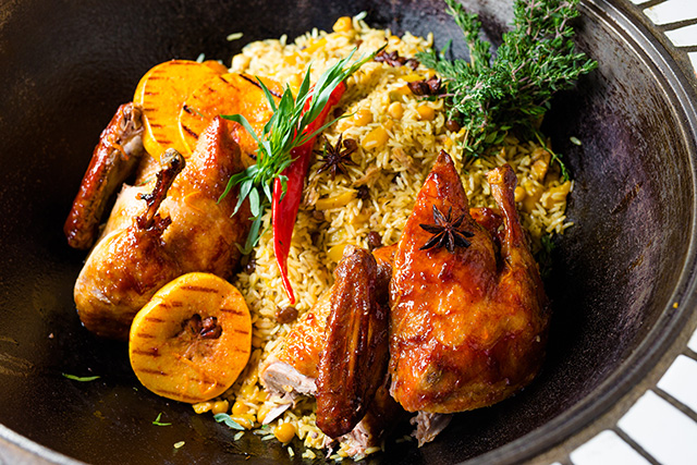 Советские люди представляли Среднюю Азию воплощением «1000 и одной ночи». Шахерезадовы байки, султаны, гаремы, персидские ковры, волнующие ароматы, экзотические пряности и непременный плов — вся эта сумасшедшая смесь трансформировалась в умах комика Сергея Светлакова и ресторатора Александра Орлова в идею восточного ресторана. Обошлись без Магриба и Персии. Казан кабоб из ягненка, стейк из конины, плов чайханский, хинкали, люля-кебабы, хачапури и главный специалитет заведения — колбаса из конины казы — доказывают, что кулинарному наследию Узбекистана и Кавказа мог бы позавидовать и сам Гассан Абдурахман ибн Хоттаб (в простонародье Хоттабыч). К грузинским супам и восточным сладостям добавлены итальянский тирамису и даже японские суши, но эклектика простительна ресторану, где по закону восточного гостеприимства стремятся угодить всем желаниям гостя.