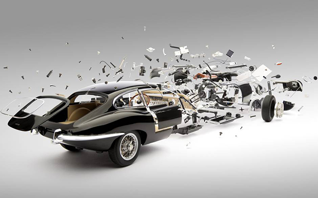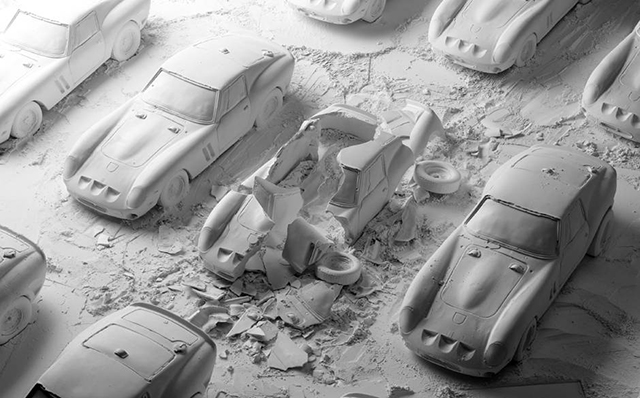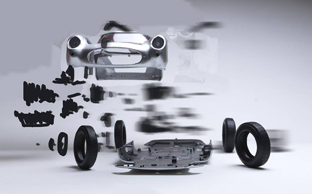 В новой серии работ под названием Disintegrating швейцарский художник Фабиан Офнер "рассеивает" в воздухе классические модели спорткаров. Mercedes-Benz 300 SLR 1954 года выпуска, Ferrari 330 P4 (1967), Jaguar E-Type (1961) и другие автомобили состоят более чем из тысячи деталей: Офнер фотографирует, как все их части застывают в воздухе, точно разлетевшиеся после взрыва обломки.